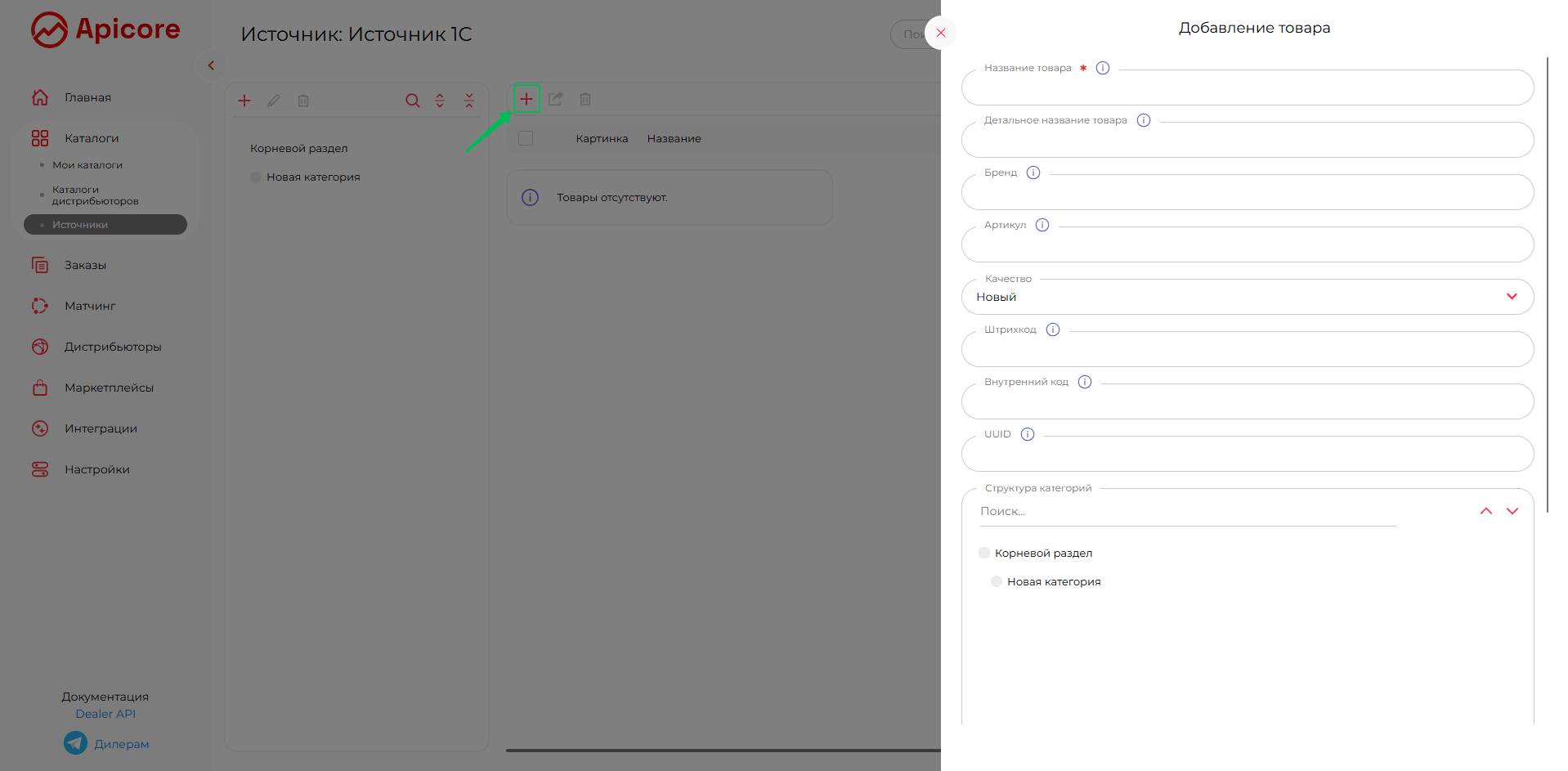 Чтобы добавить товар вручную: