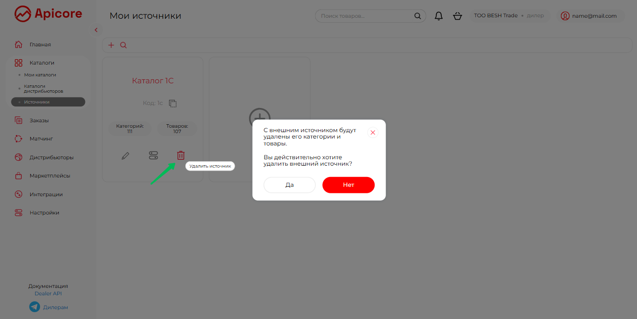 При этом будут удалены все категории и товары этого каталога.