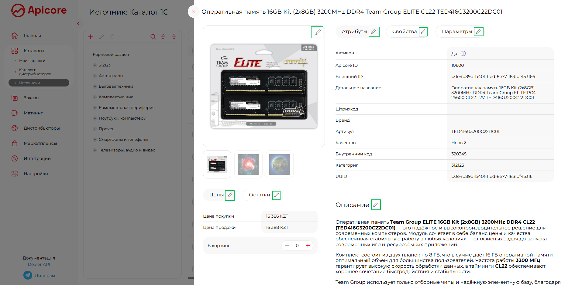 Редактирование карточки товара