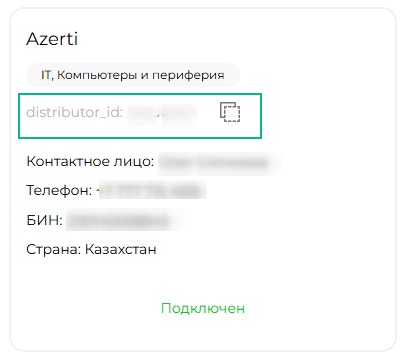 Обратите внимание: на карточке подключенных дистрибьюторов появляется distributor_id.