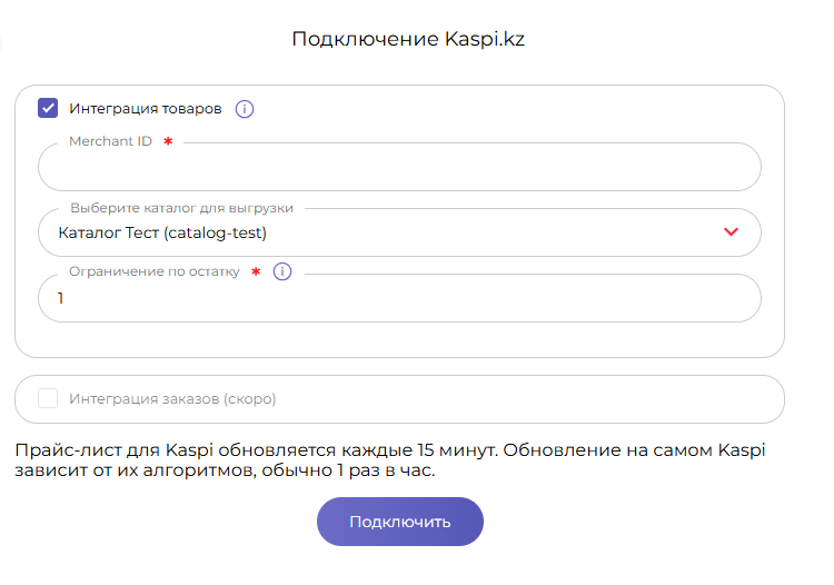 - Интеграция заказов (находится в тестовом режиме и будет доступна в будущем)