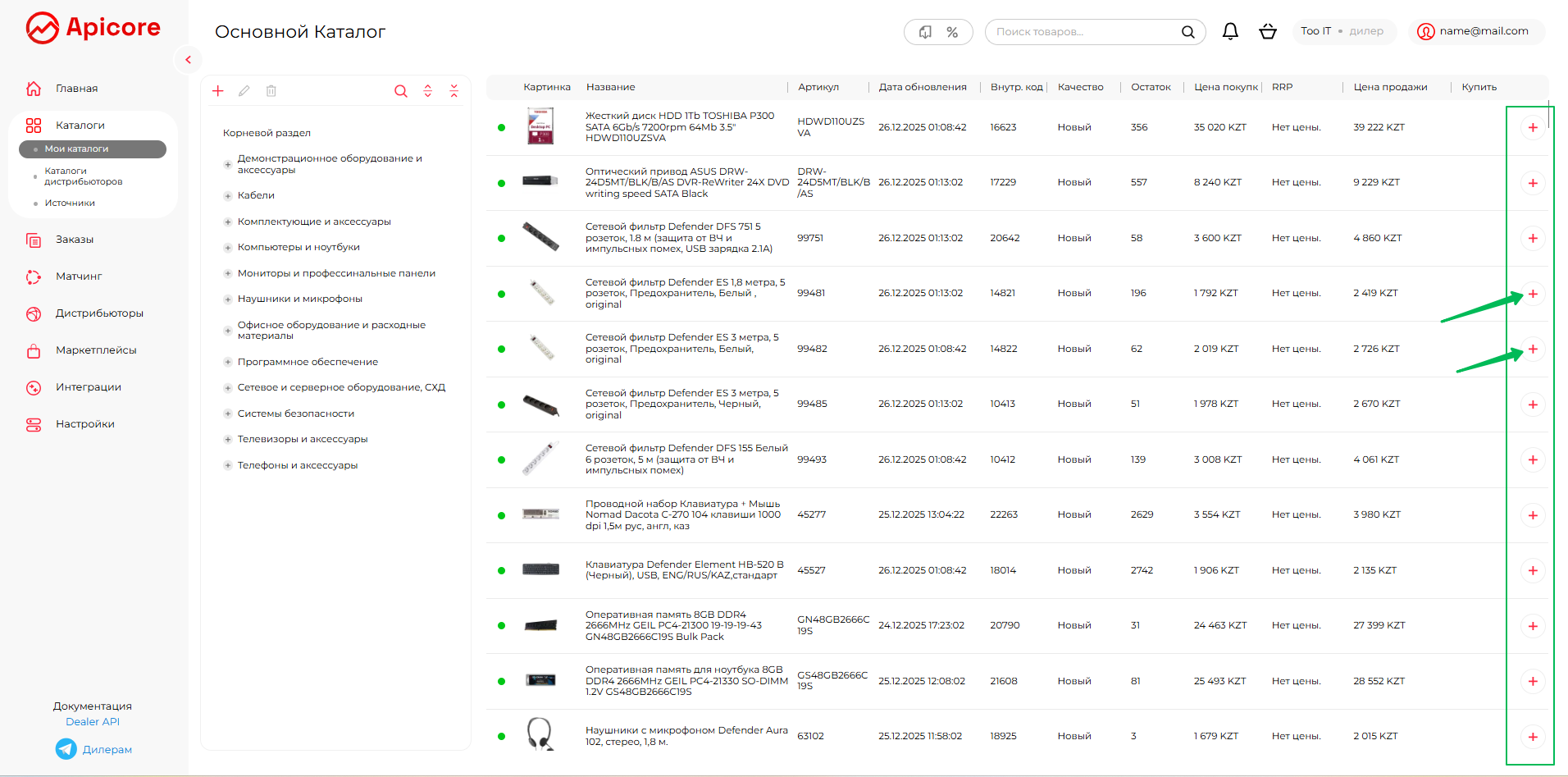 Матчинг позволяет связать товары из каталогов дистрибьюторов с товарами в вашем каталоге дилера.