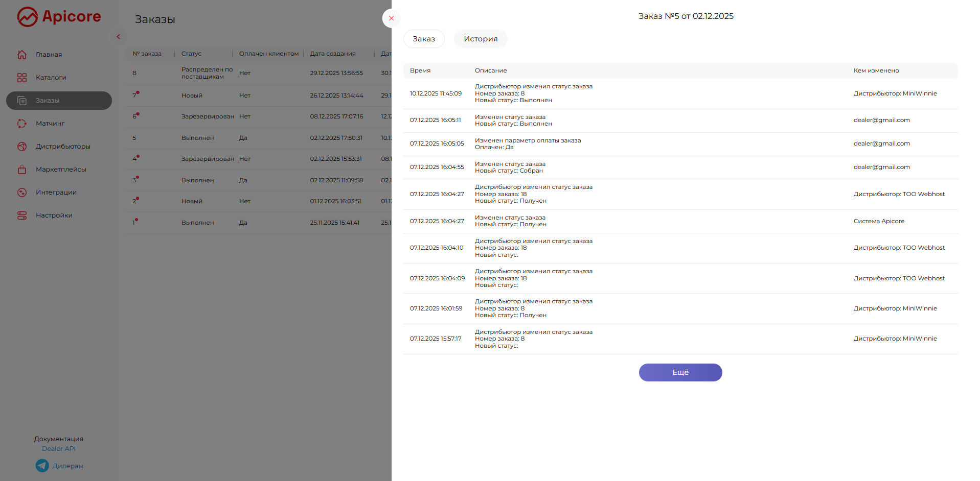 В этом разделе вы можете управлять заказами поставщикам/дистрибьюторам. Для реализации функциональности отправки заказов поставщикам убедитесь, что у вас подключены нужные поставщики.
