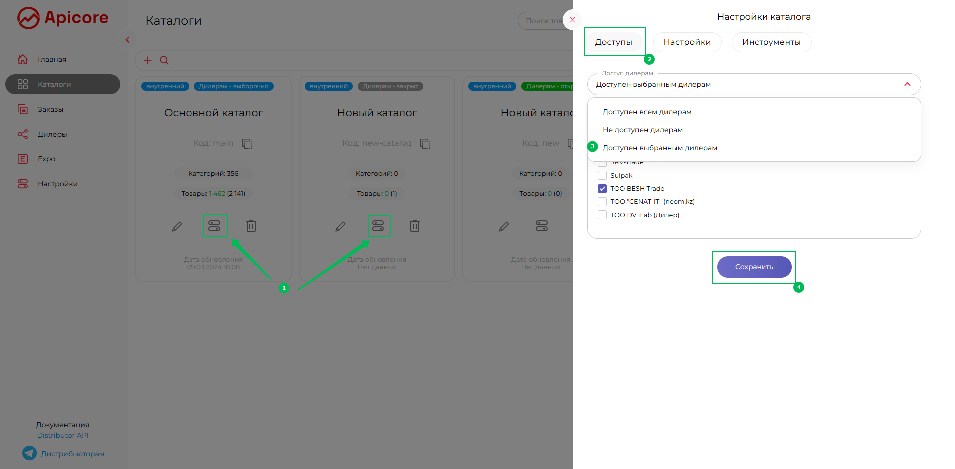 | Доступен всем дилерам | Каталог виден всем зарегистрированным дилерам платформы. |