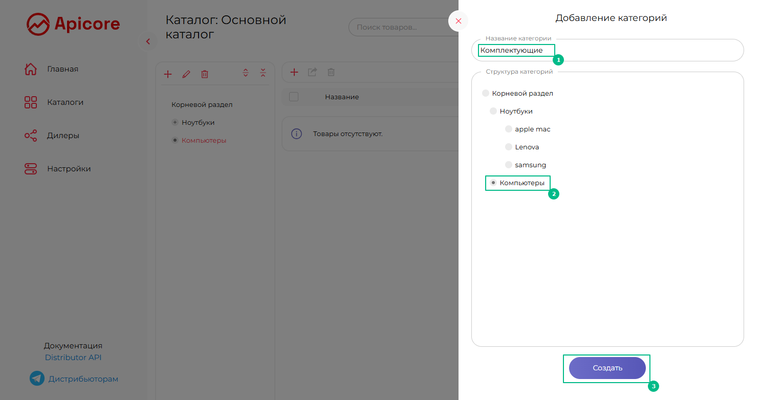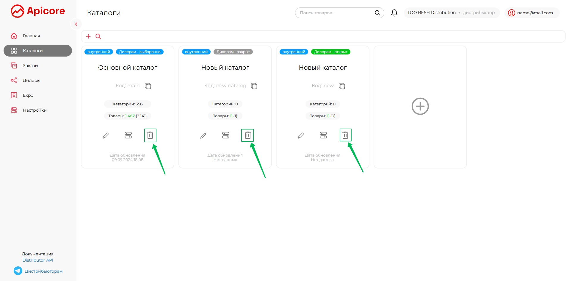 Если удалить Основной каталог, его потребуется заново импортировать в Apicore.