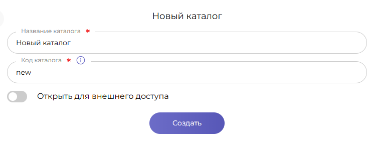 Важно! Код каталога должен содержать только латинские буквы в нижнем регистре.