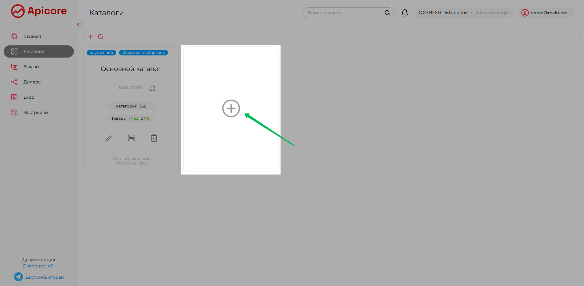 - В правой панели введите имя и код каталога, затем нажмите Создать.